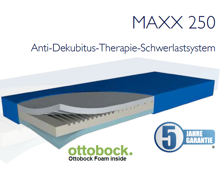 - Optimale Druckentlastung und Minimierung von Scherkräften (unter 18mm/Hg Auflagedruck)
