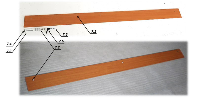 - R2: Mix: 1 Seitenbrett 14,0x0,8cm für durchgehende Seitengitter (1x), 1 Seitenbrett 14,0x0,8cm für geteilte Seitengitter (1x)